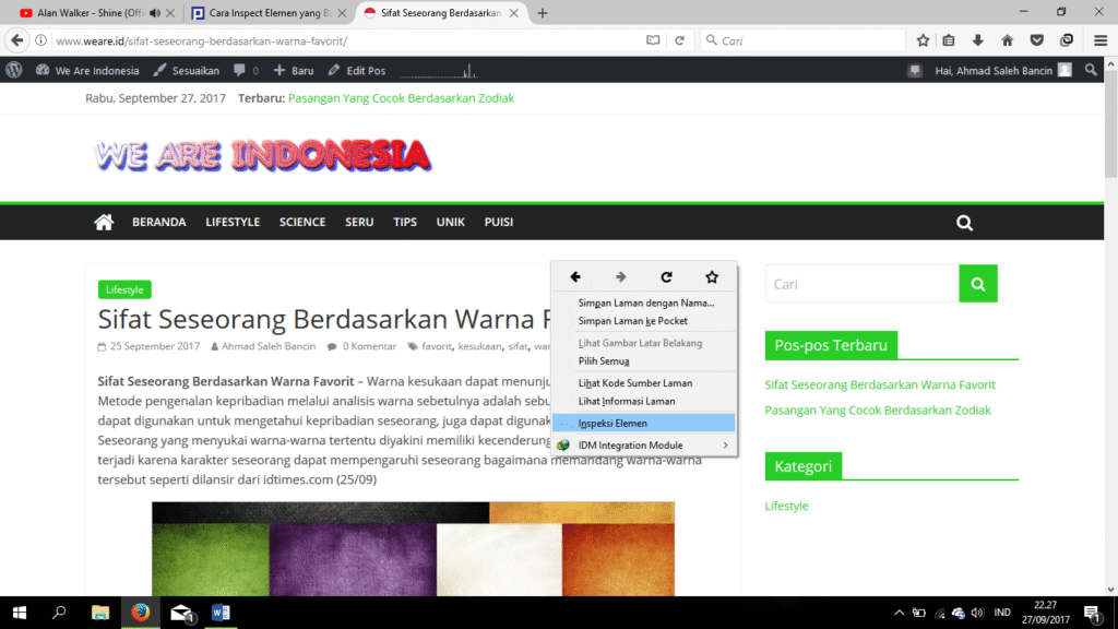 Cara Melakukan Inspect Element pada sebuah Situs atau blog