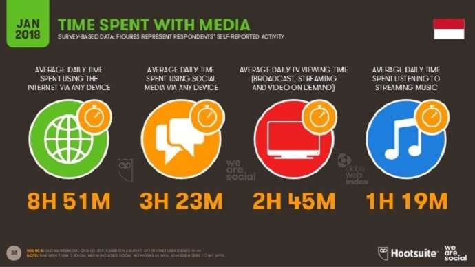 Satu lagi yang perlu di ketahui. Penggunaan internet di Indonesia berkisar selama 8 jam. Bisa dilihat data dibawah ini per Januari 2018 lalu.